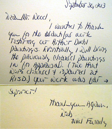 A thank-you note from a collector of Arthur Diehl's paintings: